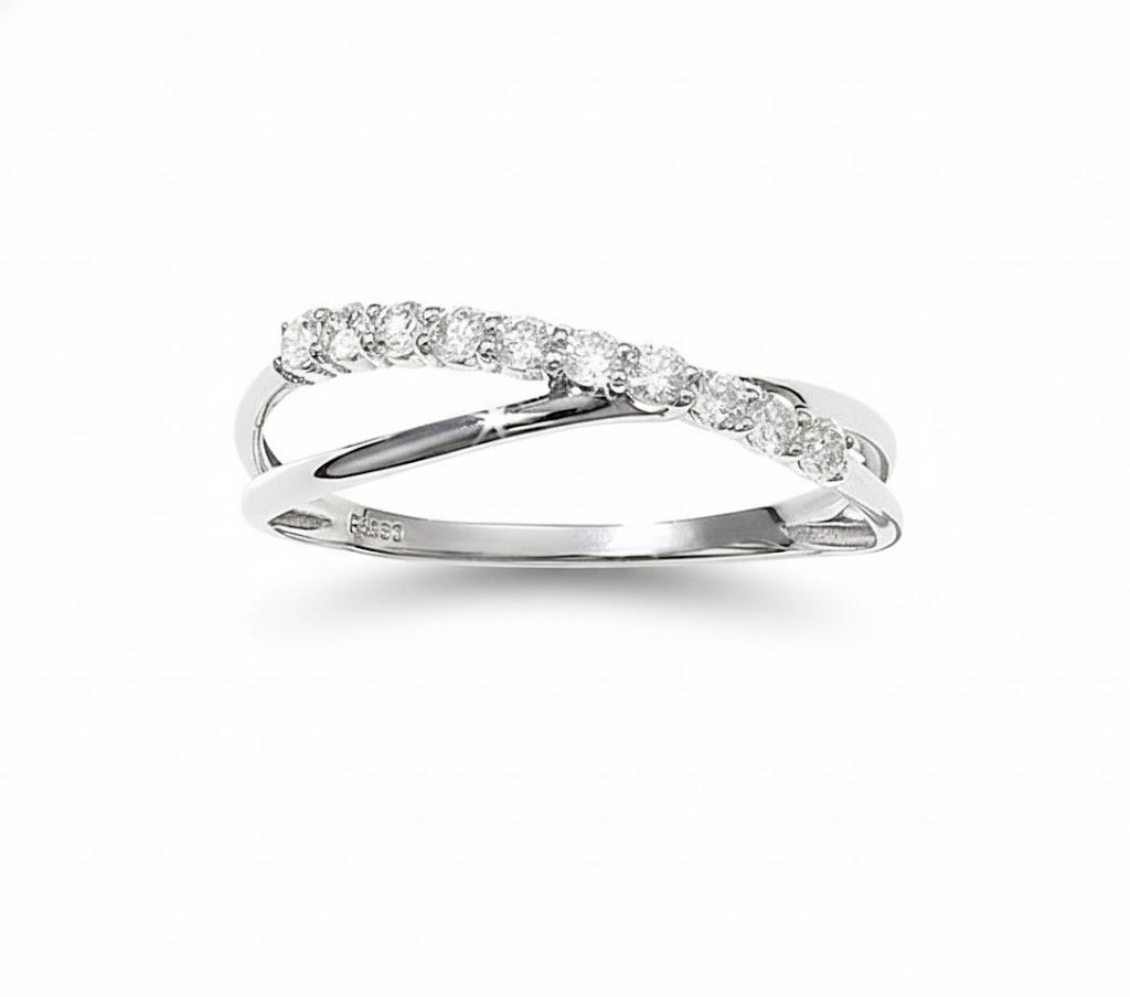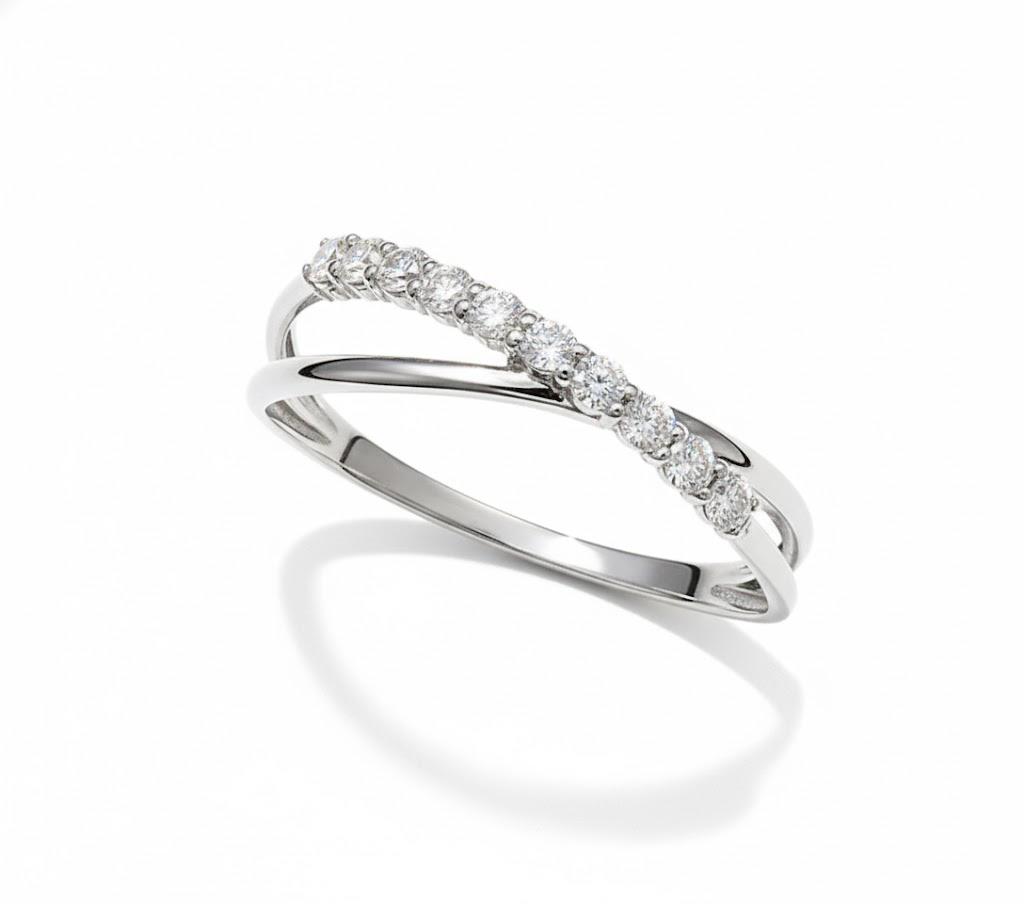 繊細なクロスラインにクリアストーンを並べた上品なリング。