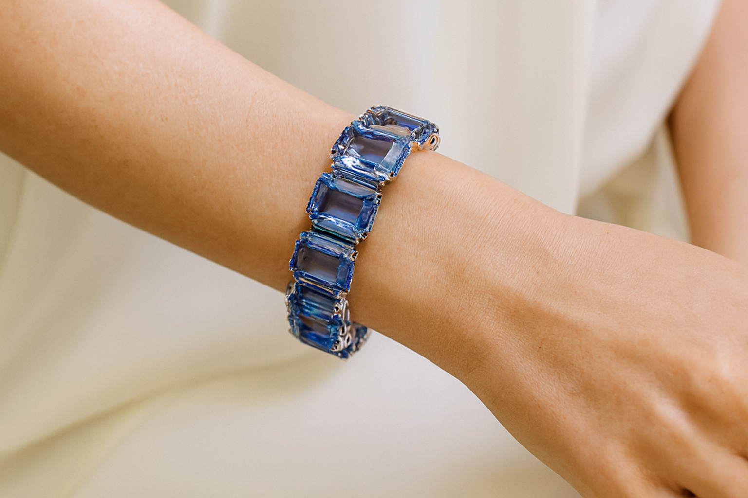 透明感あふれるブルーカイヤナイトを贅沢に連ねたラグジュアリーブレスレット。クールで知的な輝きが手元を洗練させます。