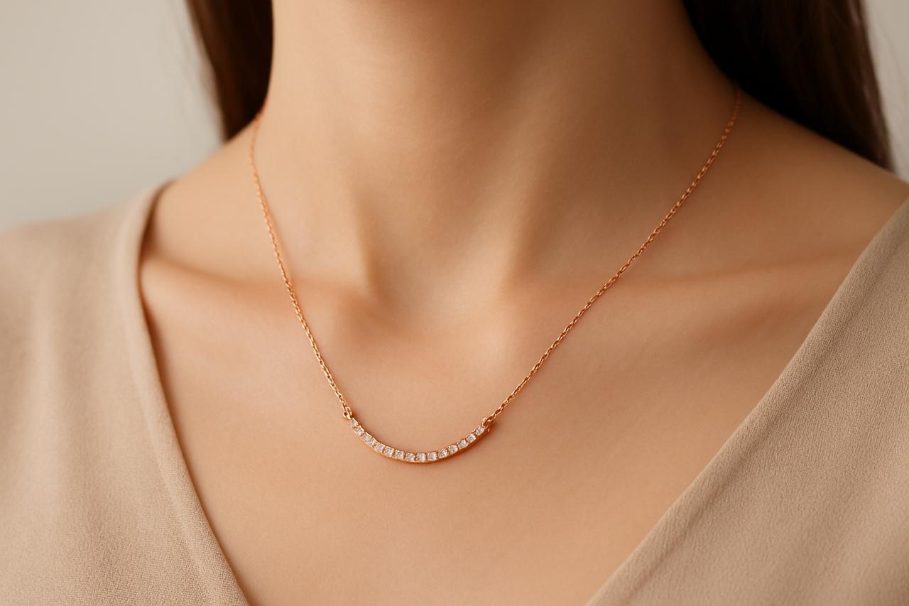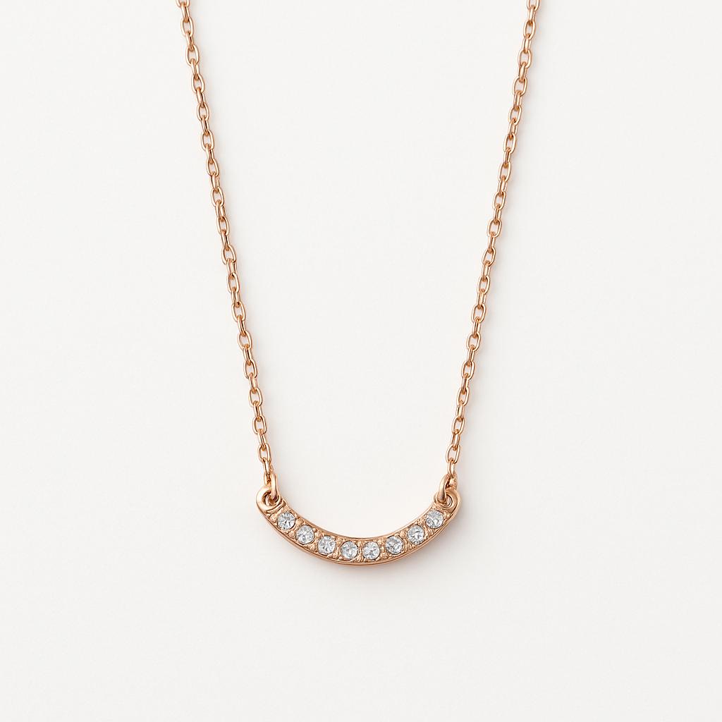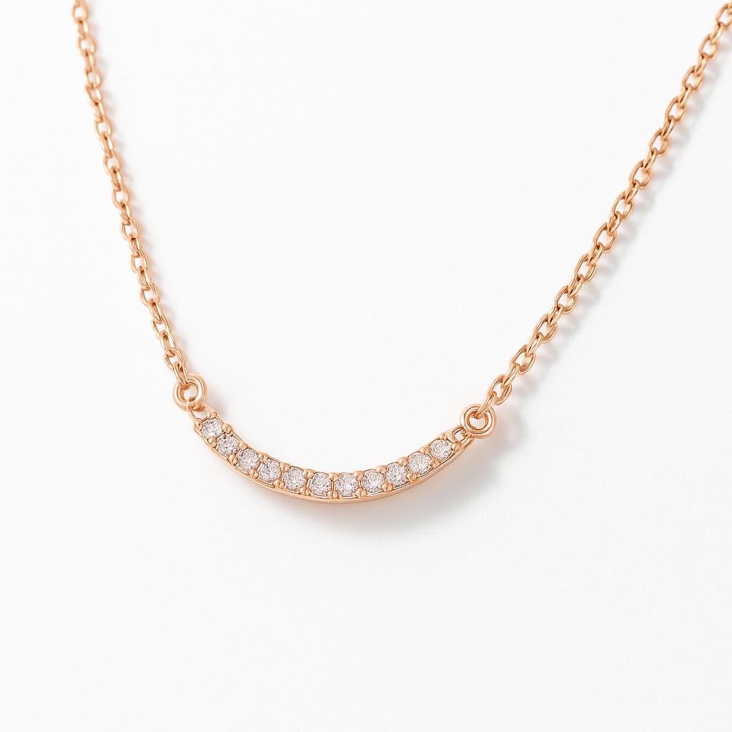穏やかな弧を描くカーブラインに、小粒のキュービックジルコニアを丁寧に並べたエレガントなネックレス。